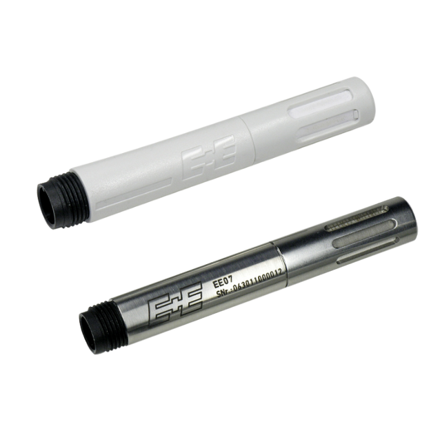 Está disponible con encapsulado en policarbonato o caña metálica y cuenta con el sensor de humedad E+E series HC105. Su amplio rango de trabajo, su excelente sistema de compensación en Temperatura y la elección de los filtros, hacen que el sensor EE07-02 sea el sensor adecuado tanto para aplicaciones en interior como para exteriores.