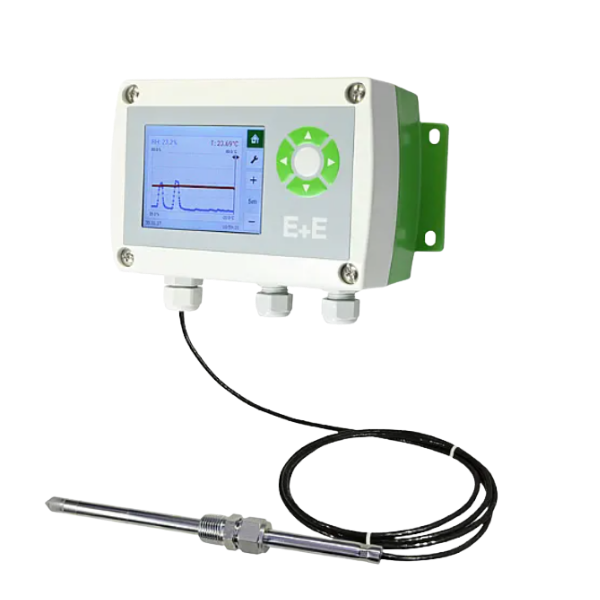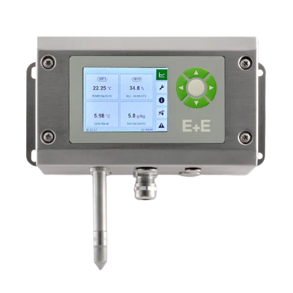 El transmisor de humedad y temperatura industrial EE310 está especialmente diseñado para mediciones precisas y fiables de humedad relativa, temperatura y parámetros derivados como punto de rocío, humedad absoluta y ratio mixto en aplicaciones industriales exigentes. Este sensor industrial es ideal para procesos que requieren alta precisión y estabilidad a largo plazo, incluso en entornos con polución o condiciones agresivas.